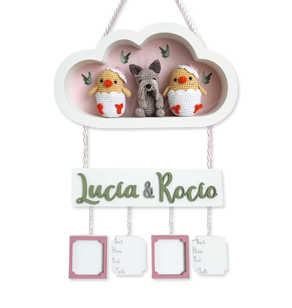 NUBE CON POLLITO CONEJITAS GEMELAS – LETRERO PARA BEBÉ