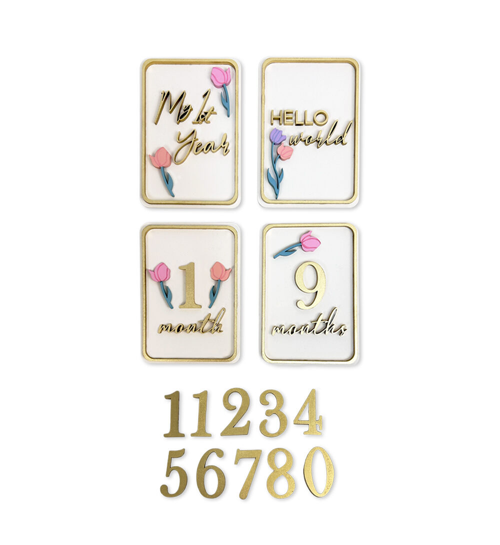 Características: Tags de acrilico con fondo pintado en color beige. Toma fotografías de tu bebé desde su día de su nacimiento y capturalo de una manera única. Temática: tulipanes